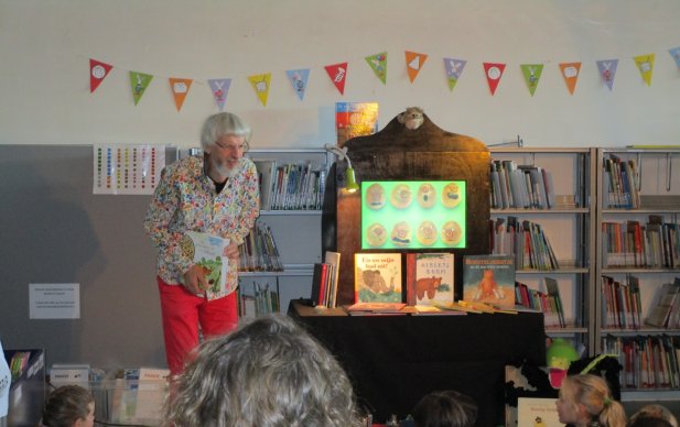 Combinaison de lire à haute voix et raconter pour les enfants. Parfois les illustrations d’un livre d’images sont visualisées sur un écran. Les histoires ou les fragments du livre se laissent raconter après être travaillées ou adaptées pour le conte.